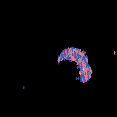 Here is a simulation of the birth rates amongt twins. There are multiple populations where agents can move around freely. There are chances of twins being born and even larger chance that a twin wont be born. Here the model can input the twin birth rates from actual live statistics or statistics made by the user.