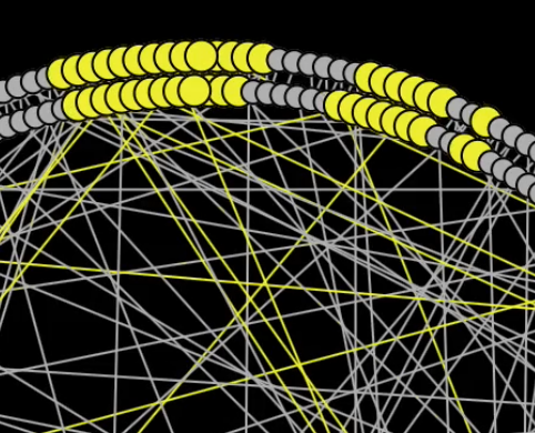 This network model is an adaptation of a model proposed by Duncan Watts and Steve Strogatz (1998). It begins with a network where each person (or "node") is connected to his or her two neighbors on either side... The REWIRING-PROBABILITY slider determines the probability that an edge will get rewired" (so that one of its endpoints goes to a random node instead of a neighbor). Clicking the setup button will produce different network configurations, all with the same rewiring probability.