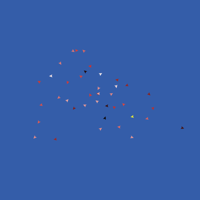 Agents can move in a toroidal virtual world (to avoid border effects) of size 51 x 51 spatial units. Their visual field is defined by an attentional angle (attentional-angle) and attentional-distance (maxview). The order in which agents act in the world is random, which is biologically plausible for small groups of agents as considered here by default. For much larger groups however a locally controlled activity sequence should also be implemented, in which agents act if they see any another agent acting in their visual field. Here to simplify, one time-step counts after all agents act in a random order.