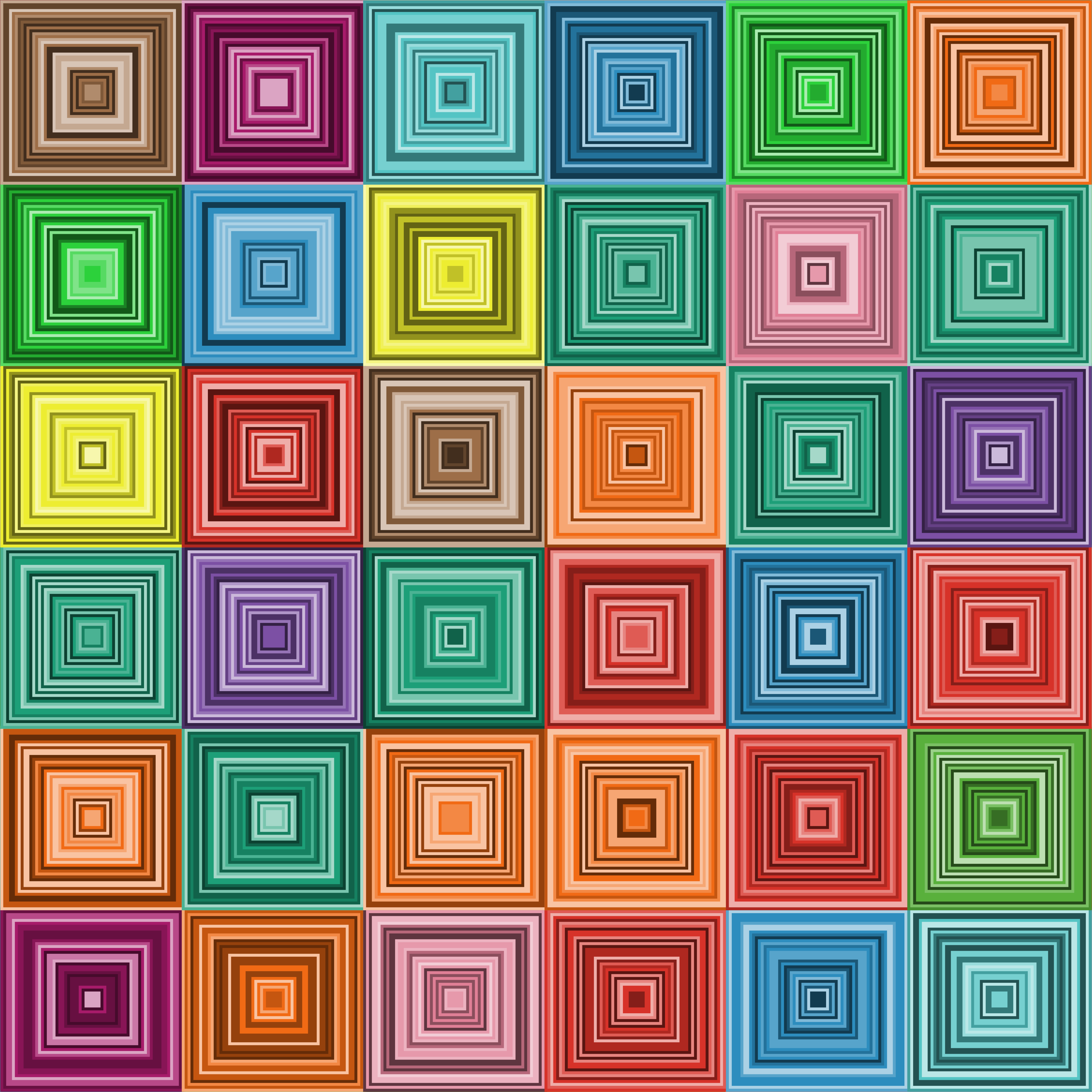 globals [ scale x y num const angle clr ] to setup set scale 63.5 set const scale * 0.004 set angle 90 set num scale / (const * 2) set clr ((random 13) + 1) * 10 end to generate crt 1 ask turtles [ set shape "square" set heading angle setxy x y repeat 30 [ set color clr + (random 8) + 2 set size scale stamp set scale scale - 2 ] ] end to draw set y 25 repeat 6 [ set x 25 repeat 6 [ setup generate ask turtles [die] set x x + 50 ] set y y + 50 ] end to clear clear-all ask patches [ set pcolor white ] end