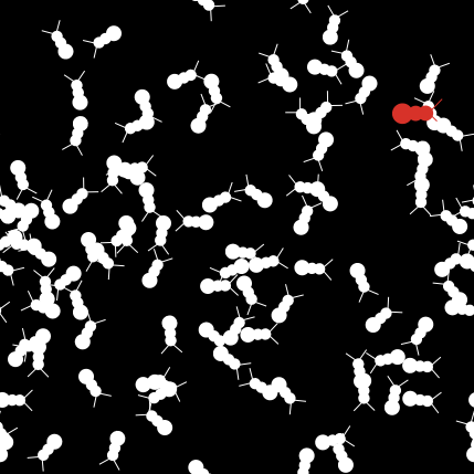 turtles-own [ message? ] to setup ; this will set up the simulation ; clear the space clear-all ; create the number of turtles the user asks for create-turtles population [ set message? false setxy random-xcor random-ycor ] ; reset the time to zero reset-ticks ; ask all of the turtles to be size 3 and white ; ask all of the turtles to be in a random position ; set the turtle shape to the animal that the user asks for ask turtles [ set shape Animal set size 3 set color white ] ; ask one turtle to change color to red and size to 4 ; set its message to be true ask n-of 1 turtles [ set color red set size 4 set message? true ] end to go ask turtles [ right random ( 90 * one-of [1 -1] ) forward 3 if any? other turtles-here with [ message? ] [ set color red set size 4 set message? true ] ] if count turtles with [ message? ] = population [ stop ] tick end