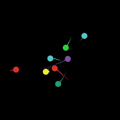 A gravidade é o melhor exemplo dessa força. Você pode observar as partículas formarem órbitas elípticas ao redor do ponteiro do mouse ou vê-las disparar ao redor dele, semelhante a como um cometa passa pelo nosso sol. Pense nos objetos individuais como planetas ou outros corpos solares e veja como eles reagem a várias massas que se movem ou permanecem estacionárias.