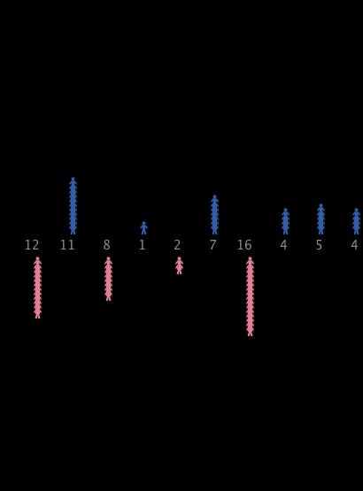 The numbers in the view show the sizes of the groups. White numbers are mixed groups and gray numbers are single-sex groups.