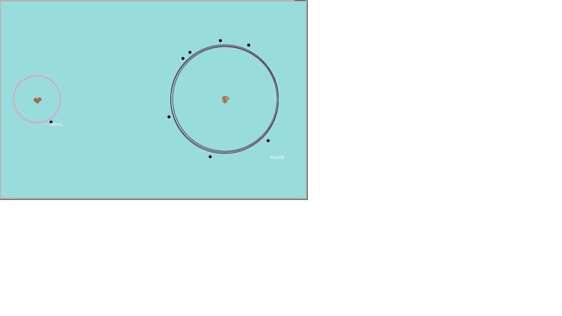 Set number of protons for each atom. Set number of electrons for AtomL. Click button Atoms Setup and Run the model.