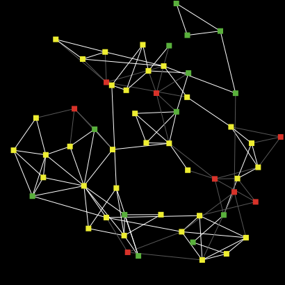 turtles-own [ infected? ;; if true, the person is infectious resistant? ;; if true, the person can't be infected virus-check-timer ;; number of ticks since this person's last virus-check ] to make-movie user-message "First, save your new movie file (choose a name ending with .mov)" let path user-new-file if not is-string? path [ stop ] ;; stop if user canceled setup movie-start path movie-grab-view while [ count turtles < 2000 ] [ go movie-grab-view ] ;; export the movie movie-close user-message (word "Exported movie to " path) end to setup __clear-all-and-reset-ticks setup-nodes setup-spatially-clustered-network ask n-of initial-outbreak-size turtles [ become-infected ] ask links [ set color white ] update-plot end to setup-nodes set-default-shape turtles "square" crt number-of-people [ setxy (random-xcor * 0.9) (random-ycor * 0.9) become-susceptible set virus-check-timer random virus-check-frequency ] end to setup-spatially-clustered-network let num-links (average-node-degree * number-of-people) / 2 while [count links < num-links ] [ ask one-of turtles [ let choice (min-one-of (other turtles with [not link-neighbor? myself]) [distance myself]) if choice != nobody [ create-link-with choice ] ] ] ; make the network look a little prettier repeat 10 [ layout-spring turtles links 0.3 (world-width / (sqrt number-of-people)) 1 ] end to go if all? turtles [not infected?] [ stop ] ask turtles [ set virus-check-timer virus-check-timer + 1 if virus-check-timer >= virus-check-frequency [ set virus-check-timer 0 ] ] spread-virus do-virus-checks tick update-plot end to become-infected ;; turtle procedure set infected? true set resistant? false set color yellow end to become-susceptible set infected? false set resistant? false set color green end to become-aids set infected? false set resistant? true set color red ask my-links [ set color gray - 2 ] end to spread-virus ask turtles with [infected?] [ ask link-neighbors with [not resistant?] [ if random-float 100 < virus-spread-chance [ become-infected ] ] ] end to do-virus-checks ask turtles with [infected? and virus-check-timer = 0] [ if random 100 < recovery-chance [ ifelse random 100 < gain-resistance-chance [ become-aids ] [ become-susceptible ] ] ] end to update-plot set-current-plot "HIV+ Status" set-current-plot-pen "Condom Usage" plot (count turtles with [not infected? and not resistant?]) / (count turtles) * 100 set-current-plot-pen "HIV+ Infected" plot (count turtles with [infected?]) / (count turtles) * 100 set-current-plot-pen "AIDS / Mature" plot (count turtles with [resistant?]) / (count turtles) * 100 set-current-plot "Usage" plot (count turtles with [not infected? and not resistant?]) set-current-plot "HIV+" plot (count turtles with [infected?]) plot 1 end