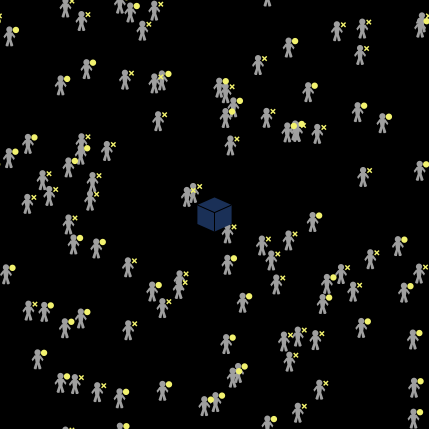 People's expectations are represented by little symbols next to their head. Blue represents "a", and yellow represents "b". Dots indicate a positive expectation. Xs indicate a negative expectation.