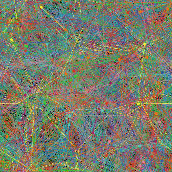 Pushing the number of turtles all the way to the right and making 100 turtles will have all of them moving forever, never stopping. With the code, anywhere from 8-15 turtles will give you mixed results. The angles are very interesting, and having the angle at the smallest setting will make large shapes and using the recommended turtls of 10, will end sometimes and go on forever others.