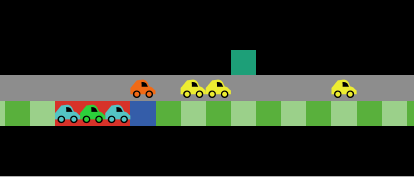 Globals [ticks1 ticks2 ticks3 z1 z2 z3 w1 w2 w3 t1 t2 t3 walk avgwalk num] turtles-own [parktimer distparked diststart disttraveled parked] ;;parked is a boolean indicating whether a car is parked or not ;;parktimer is a counter that counts down to when a parked car departs ;;ticks2 is a counter that resets every time a new car is created ;~~~~~~~~~~~~~~~~~~~~~~~~~~~~~~~~~~~~~~~~~~~~~~~~~~~~~~~~~~~~~~~~~~~~~~~~~~~~~~~~~~~~~~~~~~~~~~~~~~~~~~~~~~~~~~~~~~~~~~~~~~~~~~~~~~~~ to setup clear-all setup-patches setup-turtles reset-ticks set w1 list "null" "Walking Distance" set t1 list "null" "Walking Distance" set w2 list "null" "Walking Distance" set t2 list "null" "Walking Distance" set w3 list "null" "Walking Distance" set t3 list "null" "Walking Distance" set z1 round(random-exponential arrival_headway1) set z2 round(random-exponential arrival_headway2) set z3 round(random-exponential arrival_headway3) set num 0 end ;~~~~~~~~~~~~~~~~~~~~~~~~~~~~~~~~~~~~~~~~~~~~~~~~~~~~~~~~~~~~~~~~~~~~~~~~~~~~~~~~~~~~~~~~~~~~~~~~~~~~~~~~~~~~~~~~~~~~~~~~~~~~~~~~~~~~ to setup-patches ask patch 0 1 [ set pcolor 75] ask patches with [ pycor = -1] [ set pcolor green if (pxcor mod 2 = 0) [ set pcolor green + 2 ] ] ask patches with [pycor = 0] [ set pcolor gray ] end ;~~~~~~~~~~~~~~~~~~~~~~~~~~~~~~~~~~~~~~~~~~~~~~~~~~~~~~~~~~~~~~~~~~~~~~~~~~~~~~~~~~~~~~~~~~~~~~~~~~~~~~~~~~~~~~~~~~~~~~~~~~~~~~~~~~~~ to setup-turtles ask n-of 1 patches with [pycor = -1] [ sprout 1 [set parktimer round((random-exponential depart_headway))] ] ;print max [count turtles-here] of patches ask turtles with [who > 0] [ set color blue set shape "car" set heading 90 set pcolor red ] Ask turtle 0 [ set color orange set shape "car" set heading 90 set xcor (- startposition1) ;;This xcor indicates the spot where someone will start searching set ycor 0 ;;ycor of 0 indicates this car is on the road set diststart abs(xcor) set parked false ] end ;~~~~~~~~~~~~~~~~~~~~~~~~~~~~~~~~~~~~~~~~~~~~~~~~~~~~~~~~~~~~~~~~~~~~~~~~~~~~~~~~~~~~~~~~~~~~~~~~~~~~~~~~~~~~~~~~~~~~~~~~~~~~~~~~~~~~ to advance ;~~~~~~~~~~~~~~~~~~~~~~~~~~~~~~~~~~~~~~~~~~~~~~~~~~~~~~~~~~~~~~~~~~~~~~~~~~~~~~~~~~~~~~~~~~~~~~~~~~~~~~~~~~~~~~~~~~~~~~~~~~~~~~~~~~~~ ifelse ticks = 0 [] ;; I change this function to reset z only when ticks2 has reached to z;indicates an exponential arrival rate with mean lambda set by the user) ;; it is a float point [ ;;This is the arrival rate/creation of new cars searching for parking ifelse (ticks1 >= z1 and (not any? turtles-on patches with [(pycor = 0) and (pxcor = (- startposition1))])) [ create-turtles 1 [ set color orange - 2 set shape "car" set heading 90 set xcor (- startposition1) set diststart xcor set parked false set parktimer round(random-exponential depart_headway) ] set ticks1 0 set z1 round(random-exponential arrival_headway1) ] [ set ticks1 ticks1 + 1 ] ] ask turtles with [ (color = orange) and (ycor = 0)] [ ifelse( any? turtles-on patch-at 0 -1) [ forward 1 ] [ right 90 forward 1 set pcolor red set distparked abs(xcor) set disttraveled (xcor + startposition1) ;cruise distance set w1 lput (abs(distparked)) w1 set t1 lput (disttraveled) t1 set parked true set num num + 1 set walk walk + (abs(distparked)) set avgwalk (walk / num) ] ] ask turtles with [ (color = orange - 2) and (ycor = 0)] [ set color orange ] ;~~~~~~~~~~~~~~~~~~~~~~~~~~~~~~~~~~~~~~~~~~~~~~~~~~~~~~~~~~~~~~~~~~~~~~~~~~~~~~~~~~~~~~~~~~~~~~~~~~~~~~~~~~~~~~~~~~~~~~~~~~~~~~~~~~~~ ifelse ticks = 0 [] [ ;;This is the arrival rate/creation of new cars searching for parking ifelse (ticks2 >= z2 and (not any? turtles-on patches with [(pycor = 0) and (pxcor = (- startposition2))])) [ create-turtles 1 [ set color lime - 2 set shape "car" set heading 90 set xcor (- startposition2) set diststart xcor set parked false set parktimer round(random-exponential depart_headway) ] set ticks2 0 set z2 round(random-exponential arrival_headway2) ] [ set ticks2 ticks2 + 1 ] ] ask turtles with [ (color = lime) and (ycor = 0)] [ ifelse( any? turtles-on patch-at 0 -1) [ forward 1 ] [ right 90 forward 1 set pcolor red set distparked abs(xcor) set disttraveled (xcor + startposition2) ;cruise distance set w2 lput (abs(distparked)) w2 set t2 lput (disttraveled) t2 set parked true set num num + 1 set walk walk + (abs(distparked)) set avgwalk (walk / num) ] ] ask turtles with [ (color = lime - 2) and (ycor = 0)] [ set color lime ] ;~~~~~~~~~~~~~~~~~~~~~~~~~~~~~~~~~~~~~~~~~~~~~~~~~~~~~~~~~~~~~~~~~~~~~~~~~~~~~~~~~~~~~~~~~~~~~~~~~~~~~~~~~~~~~~~~~~~~~~~~~~~~~~~~~~~~ ifelse ticks = 0 [] [ ;;This is the arrival rate/creation of new cars searching for parking ifelse (ticks3 >= z3 and (not any? turtles-on patches with [(pycor = 0) and (pxcor = (- startposition3))])) [ create-turtles 1 [ set color cyan - 2 set shape "car" set heading 90 set xcor (- startposition3) set diststart xcor set parked false set parktimer round(random-exponential depart_headway) ] set ticks3 0 set z3 round(random-exponential arrival_headway3) ] [ set ticks3 ticks3 + 1 ] ] ask turtles with [ (color = cyan) and (ycor = 0)] [ ifelse( any? turtles-on patch-at 0 -1) [ forward 1 ] [ right 90 forward 1 set pcolor red set distparked abs(xcor) set disttraveled (xcor + startposition3) ;cruise distance set w3 lput (abs(distparked)) w3 set t3 lput (disttraveled) t3 set parked true set num num + 1 set walk walk + (abs(distparked)) set avgwalk (walk / num) ] ] ask turtles with [ (color = cyan - 2) and (ycor = 0)] [ set color cyan ] ;~~~~~~~~~~~~~~~~~~~~~~~~~~~~~~~~~~~~~~~~~~~~~~~~~~~~~~~~~~~~~~~~~~~~~~~~~~~~~~~~~~~~~~~~~~~~~~~~~~~~~~~~~~~~~~~~~~~~~~~~~~~~~~~~~~~~ ask turtles with [color = yellow] [ forward 1 ] ask turtles with [ycor = -1] ;;Departure code-- Cars will depart when their parktimer is 0. Parktimer is set randomly (exponentially) upon creation. [ ifelse (parktimer <= 0 and (not any? turtles-on patch-at 0 1 )) [ depart ] [ set parktimer (parktimer - 1) ] ] ask turtles with [ (xcor = max-pxcor) and (color = yellow)] [ die ] tick end ;~~~~~~~~~~~~~~~~~~~~~~