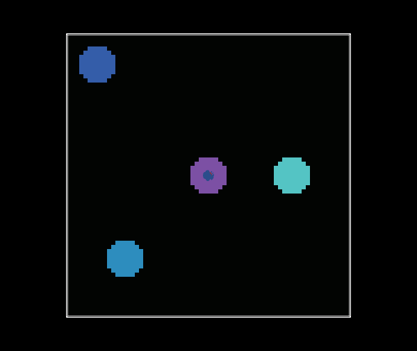 In this project, a colony of ants forages for food. Though each ant follows a set of simple rules, the colony as a whole acts in a sophisticated way.