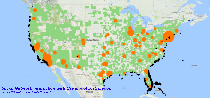 The environment can either be the heavy freight transportation network or a map of shark attacks across the United States.