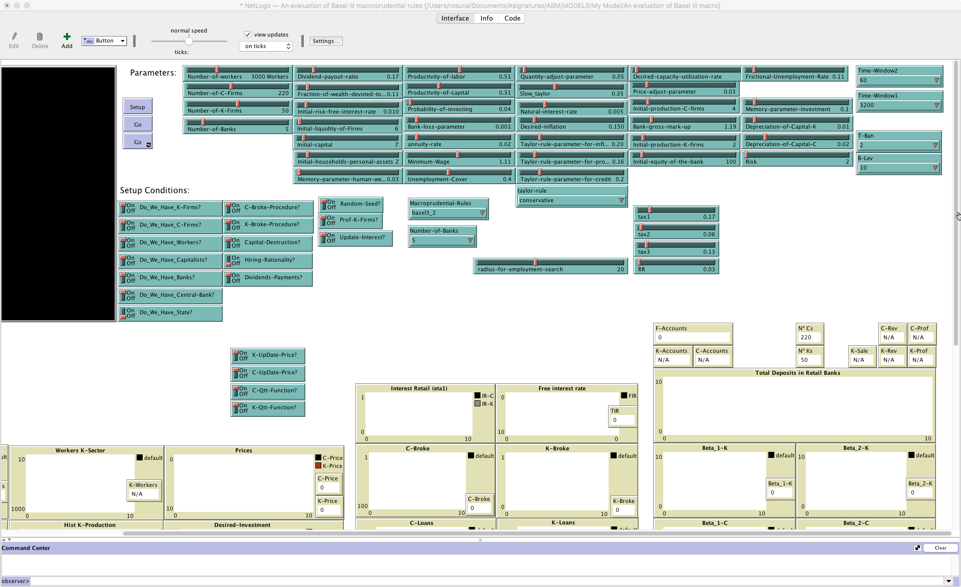 The financial-economic crisis that started in 2008 has questioned all the previous equilibrium-based macroeconomic models (Dynamic Stochastic General Equilibrium models). The Agent-Based Models allow a more flexible and complex kind of models, where heterogeneity are easily incorporated and equilibrium is not a pre-imposed feature of the model. In ABMs individuals are not forced to solve any complex intertemporal optimization under the rational expectations hypothesis. Now we can assume more realistic assumptions and consider that the information is limited, there are trasaction costs, rationality is constrained, etc. This model is a specific implementaion of the model outlined in Assenza et al. (2015).