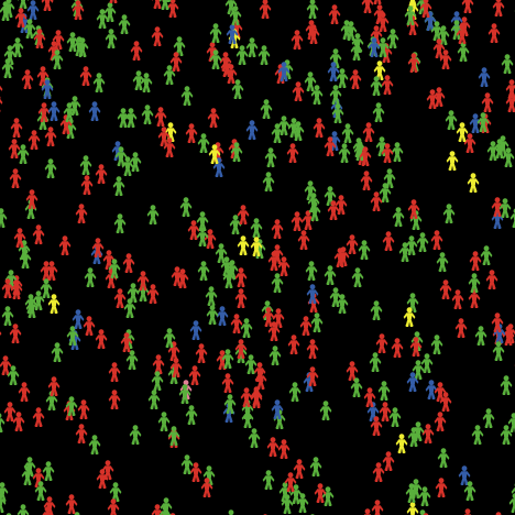 Men are represented initially with the blue color and their status are WHOLESOME. They can be turned into a POTENTIAL-MURDERER with a probability that it can changes manually. They are represented with the green color. On the other hand, the men can be turned into a WHOLESOME man with a probability that it can changes manually.