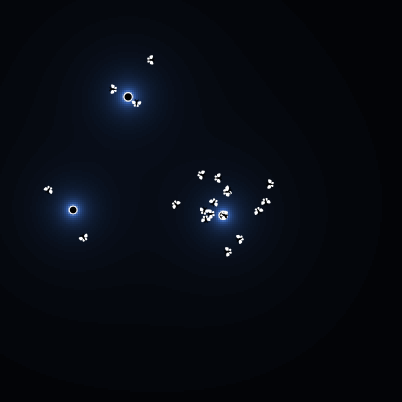 When the model begins, notice how moths are attracted to the two lights. What happens when the lights are created very close together? What happens when the lights are created very far apart?