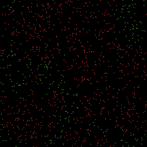 ;; turtles-own [zustand dauer ] ;; zustand 's', 'i', 'r' ;; dauer bisherige Dauer der Erkrankung breed [suszeptible suszeptibles] breed [kranke krankes] breed [geheilte geheiltes] breed [tote totes] patches-own [viren] to setup clear-all setup-patches setup-suszeptible setup-kranke reset-ticks end to setup-patches ask patches [ set pcolor 0 set viren 0 ] end to setup-suszeptible create-suszeptible Individuen ask suszeptible [ setxy random-xcor random-ycor set color 55 set shape "circle" ] end to setup-kranke create-kranke 10 ask kranke [ setxy random-xcor random-ycor set color 15 set shape "circle" ] end to go if ticks >= 360 [ stop ] ;; nach einem Jahr aufhören move-suszeptible move-kranke infiziere-umgebung klinge-ab stecke-dich-an tick ;; Tage mitzählen end to move-suszeptible ask suszeptible [ right random 360 forward Beweglichkeit ] end to move-kranke ask kranke [ right random 360 forward Beweglichkeit ] end to infiziere-umgebung ask kranke [ set viren verseuchung ] end to klinge-ab ask patches [ if viren > 0 [ set viren viren - 1 ] ] end to stecke-dich-an ask suszeptible[ if random verseuchung < viren [ hatch-kranke 1 [set color 15 set shape "circle"] die ] ] end ;; to check-death ;; ask turtles [ ;; if energy <= 0 [ die ] ;; removes the turtle if it has no energy left ;; ] ;; end ;; to regrow-grass ;; ask patches [ ;; 3 out of 100 times, the patch color is set to green ;; if random 100 < 3 [ set pcolor green ] ;; ] ;; end ; Public Domain: ; To the extent possible under law, Uri Wilensky has waived all ; copyright and related or neighboring rights to this model.