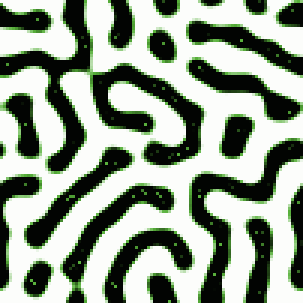 "Fur" in Models Library/Biology "A continuous Activator-Inibitor System" by Bruce McClennnan in Netlogo Modelling Commons.