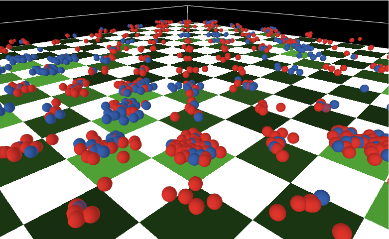 After a certain number of rounds (‘duration,’ which is 10 by default), patches ‘reset’ and all individuals disperse at random to start reproducing/gathering resources again. (This represents seasonality, disturbance, resource exhaustion, etc., and is vaguely based on social insect and microbial group life cycles.) The more of a genotype there is just before patch reset, the more chances they will have to successfully colonize new patches immediately after reset.