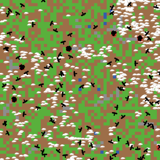 When running the rats-mongooses-sugarcane model or the rats-mongooses-hawks model, notice the patches can turn grey or yellow depending on the targeted walk.(this is listed in things to try)
