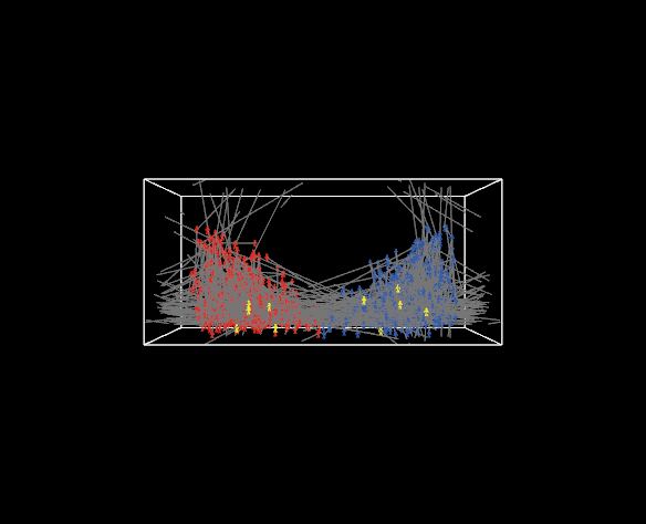 By pressing "Setup", the model creates a population of agents according to the size of the population of agents desired in the "pop" window and which can follow two distributions: the first is only random and assigns multiple links to all agents, the second establishes links between agents according to the proximity of the agents with regard to their "opinion" and uses the "update-networks" procedure. The parameters of this procedure can be modified with the sliders "link-removal-threshold" establishing a threshold to eliminate links between agents whose opinions are distant and "link-formation-threshold" creating links between agents whose opinions are closer.It is also possible to multiply the number of links by pressing the "links" button which creates a new call to the "update-networks" procedure.