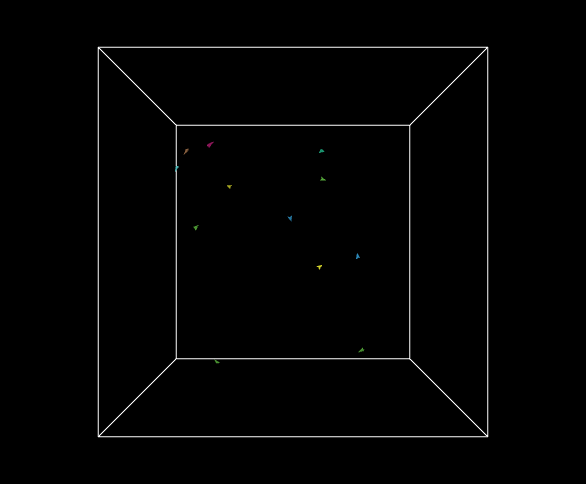 globals [ radius ] to setup clear-all set radius ( world-width - 2 ) / 2 create-turtles 12 [ ;; move to a random point on the sphere tilt-up ( random 180 ) - 90 fd radius ;; lie tangent to the sphere tilt-down 90 ;; turn again so that not all turtles are moving ;; to north and south poles rt random 360 pen-down ] reset-ticks end to go-distance ask turtles [ arc-forward-by-distance step-size lt random wiggle-range rt random wiggle-range ] tick end to go-angle ask turtles [ arc-forward-by-angle arc-angle lt random wiggle-range rt random wiggle-range ] tick end ;; This procedure moves the turtle to the next point ;; on the sphere the given distance along the curve. to arc-forward-by-distance [dist] ;; turtle procedure ;; calculate how much of an angle we'll be turning through ;; (essentially converting radians to degrees) let theta dist * 180 / ( pi * radius ) ;; turn to face the next point we're going to tilt-down theta / 2 ;; go there fd dist ;; turn to face tangent to the circle tilt-down theta / 2 end ;; This procedure moves the turtle to the next point ;; on the sphere the given angle measure along the curve. to arc-forward-by-angle [angle] ;; turtle procedure ;; turn to face the next point we're going to tilt-down angle / 2 ;; calculate the distance we'll have to move forward ;; in order to stay on the circle. Go there. fd 2 * radius * sin (angle / 2) ;; turn to face tangent to the circle tilt-down angle / 2 end ; Public Domain: ; To the extent possible under law, Uri Wilensky has waived all ; copyright and related or neighboring rights to this model.