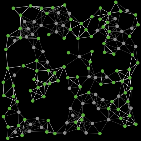 The network that is created is based on proximity (Euclidean distance) between nodes. A node is randomly chosen and connected to the nearest node that it is not already connected to. This process is repeated until the network has the correct number of links to give the specified average node degree.