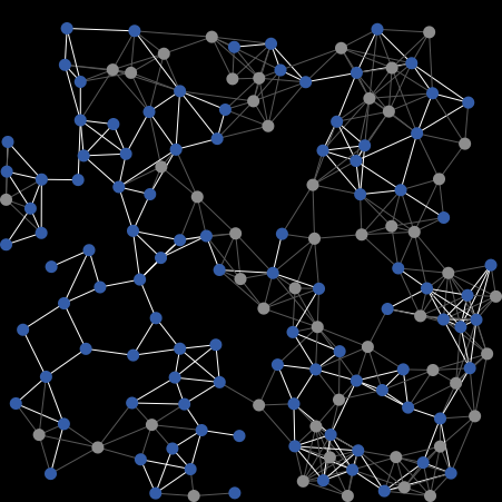 The network that is created is based on proximity (Euclidean distance) between nodes. A node is randomly chosen and connected to the nearest node that it is not already connected to. This process is repeated until the network has the correct number of links to give the specified average node degree.