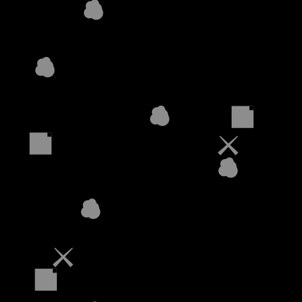 breed [papers paper] breed [rocks rock] breed [scissors scissor] to setup clear-all reset-ticks create-rocks 10 [ setxy random-xcor random-ycor ;set pen-mode "down" ;;set label "✂" set size 2 set shape "rock" ;set shape one-of ["paper" "scissors" "rock"] set color 5 ] create-papers 10 [ setxy random-xcor random-ycor ;set pen-mode "down" ;;set label "✂" set size 2 set shape "paper" ;set shape one-of ["paper" "scissors" "rock"] set color 5 ] create-scissors 10 [ setxy random-xcor random-ycor ;set pen-mode "down" ;;set label "✂" set size 2 set shape "scissors" ;set shape one-of ["paper" "scissors" "rock"] set color 5 ] end to go ; ask turtles [ ; ifelse random 2 = 0 [ ; move up ; set ycor ycor + 1 ; ] ;[ ; move down ; set ycor ycor - 1 ;] ;] ; paper > rock ; rock > scissors ; scissors > rock ask rocks [ right random 90 left random 90 forward 0.1 ] ask papers [ right random 90 left random 90 forward 0.1 ] ask scissors [ right random 90 left random 90 forward 0.1 ] ask papers [ ask rocks-here [ set color grey set shape "paper" ]] ask rocks [ ask scissors-here [ set color grey set shape "rock" ]] ask scissors [ ask papers-here [ set color grey set shape "scissors" ]] ; tick end